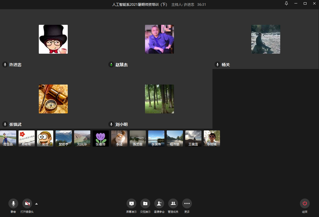 2021年暑期郑州疫情再次爆发,暑假申请的线下师资培训都无法参加,肆虐的疫情也无法阻挡教师们参加师资培训,人工智能系教师积极参与各类线上师资培训。为了提升人工智能专业课程教学能力,人工智能系也在8月26日通过企业微信会议,举行了内部线上师资培训。williamhill英国杨关副院长和王佩雪副院长也参加了培训会,杨关副院长还作为师资培训主讲人分享了人工智能数学教学经验。