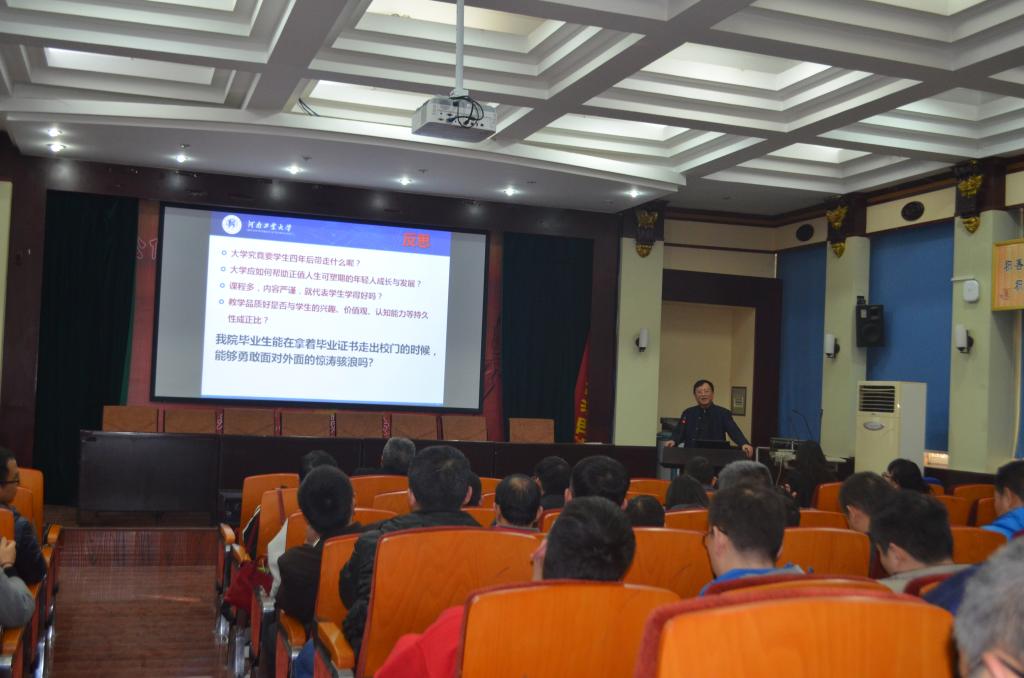 张德贤教授从形势和机遇两个方面介绍了工程教育专业认证的背景和意义,对工程教育专业认证内涵、核心理念作了系统解读;结合河南工业大学专业认证工作经验,对课程体系构建、毕业要求达成度评价、工程教育专业认证申请书撰写、工程教育专业认证工作思路及改进方向进行了详细指导。