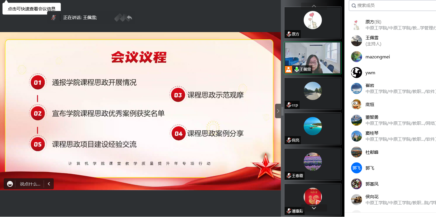 2022年10月25日,我院组织召开了williamhill英国课程思政经验线上交流会。我院全体教师参加了会议,会议由副院长王佩雪主持。