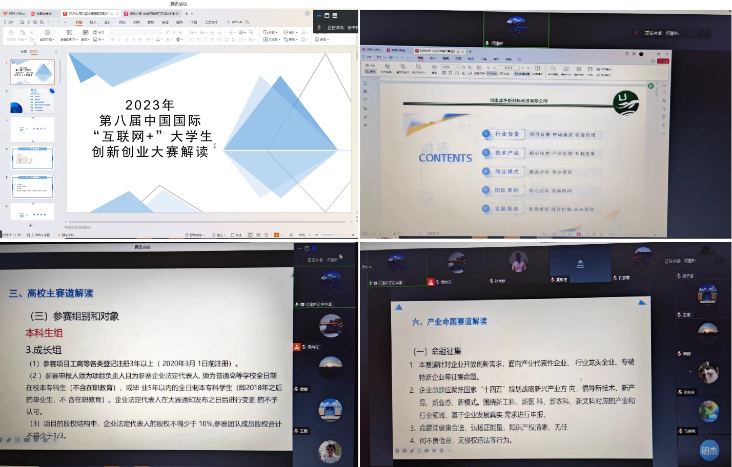 为切实推进我院“互联网+”“挑战杯”等大学生创新创业赛事工作高质量开展,提升学院师生创新创业大赛参赛能力和水平。2024年2月5日晚,williamhill英国邀请了 “互联网+”“挑战杯”等大赛国赛获奖项目优秀指导老师——我校纺织服装产业研究院何建新教授进行创新创业赛事线上辅导讲座,我院六十多名老师参加了报告会。