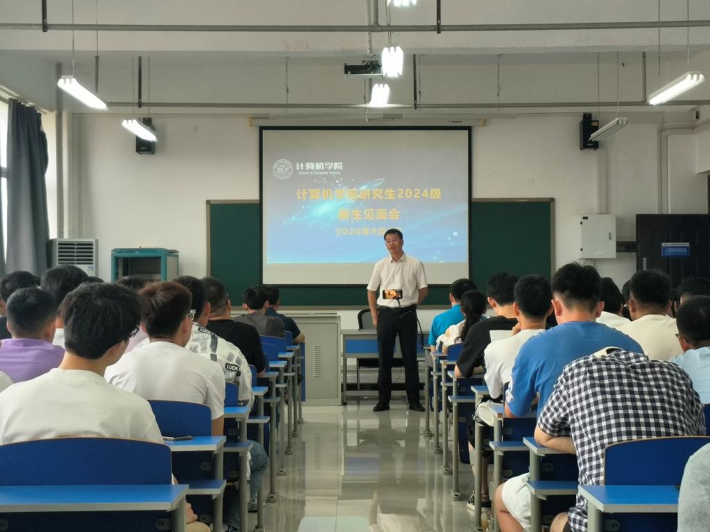 执行院长张书钦介绍了学院、学科、导师等情况,强调了研究生做好自我规划的重要性,呼吁同学们积极主动与导师沟通交流,做好研究生角色的转变。同时锻炼自己的综合能力,成就全面型人才,并送上殷切寄语,即三个“成为”:成为一个有家国情怀、道德高尚、学会感恩的人;成为对国家社会有用的人,即研究方向面向国家战略与社会需求;成为一个自信的人,能够发现问题并解决问题,锻炼全方位的能力素养,主动融入学校加速更名大学的建设目标,抓住计算机技术迅猛发展的大好机遇,与学校共成长。张院长祝愿每一位研究生新同学拥有一个充实、难忘、富有收获的研究生生涯。