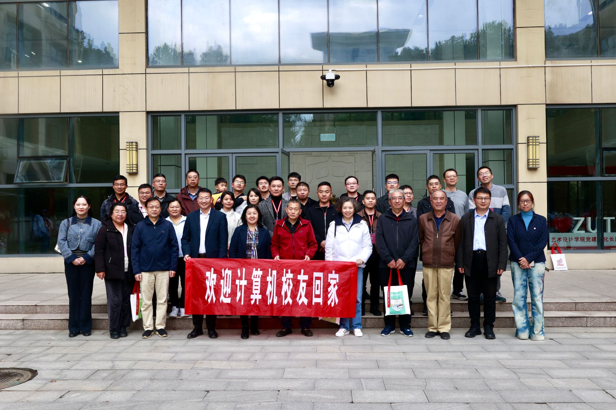 所有参会领导、老师、校友,参观学院及实验室之后在3号组团楼西门合影留念。之后由志愿者引导参观校史馆、科技展和校园。(通讯员 侯向花)
