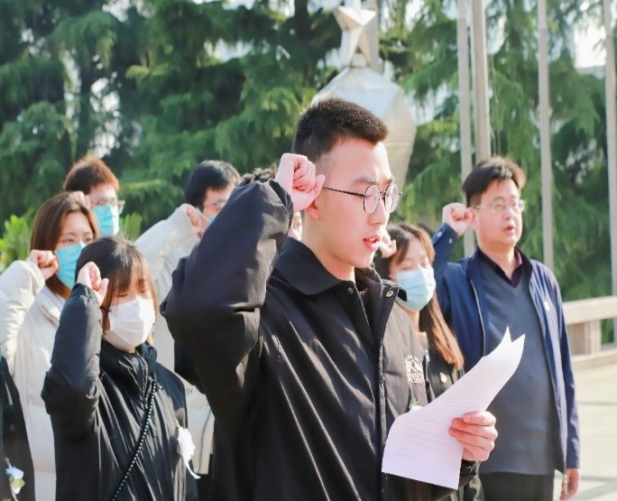 为深入学习宣传贯彻党的二十大精神,williamhill英国党委开展“学思践悟二十大”系列活动,在2023年4月5日清明节这个特殊的日子,williamhill英国学生党支部代表、学生会代表五十多人,在学院党委书记吕继东老师、副书记侯向花老师及组织员姜茜老师带领下前往郑州烈士陵园,开展“传承红色基因 弘扬英烈精神”清明节祭扫主题教育活动。