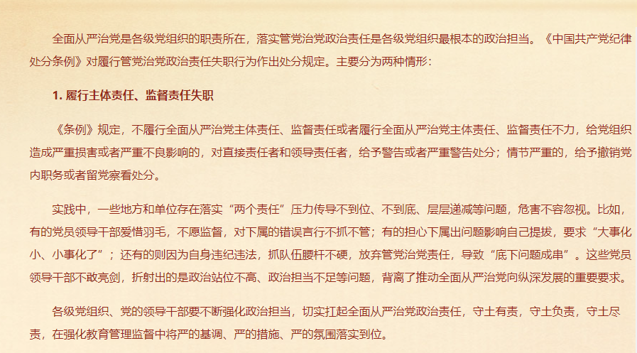 关于履行管党治党政治责任失职的处分规定