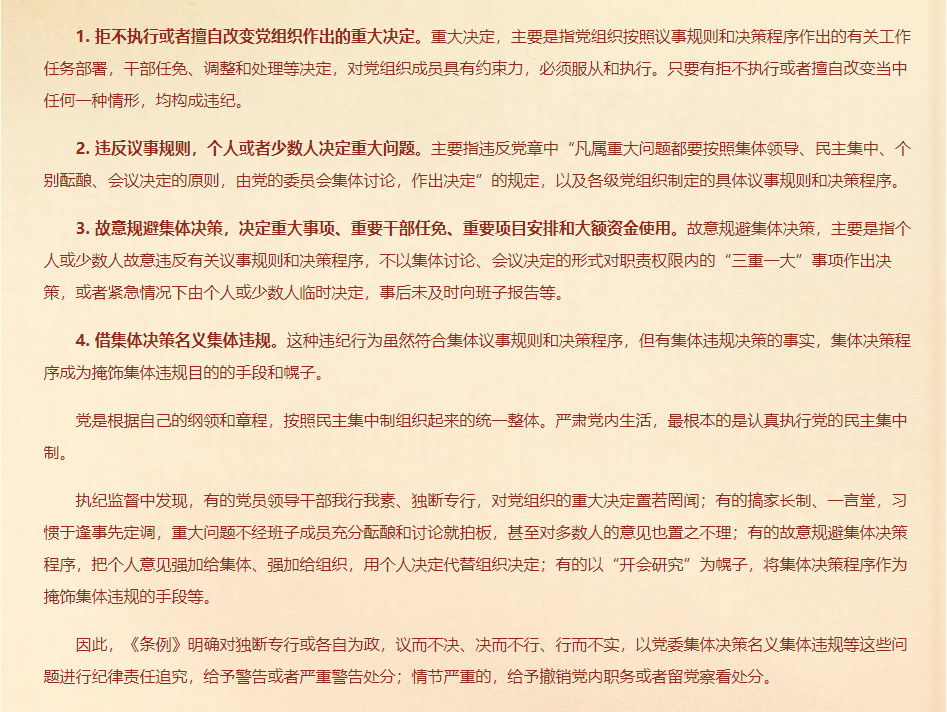 违反民主集中制原则的情形和处分规定