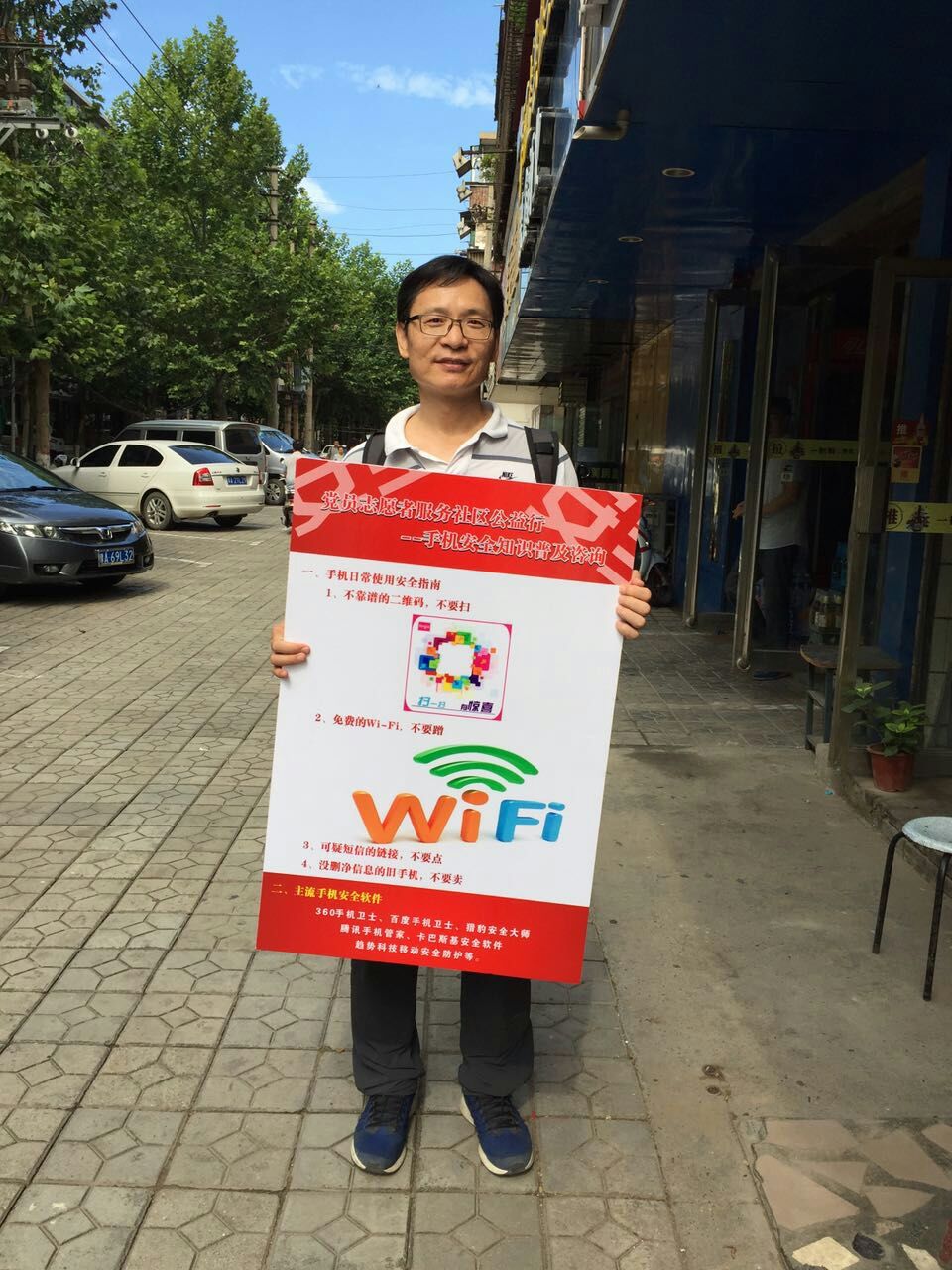 当天一大早,党员们就早早来到了约定地点,接着大家一起步行到达伊河路上的长宏花园,怀着激动的心情开始工作,居民们听说是党员志愿者普及手机安全知识,都很乐意听我们讲解,并主动索要宣传资料。