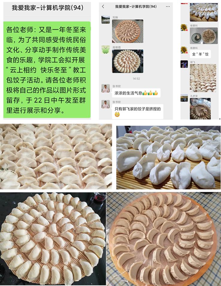 冬至是中国重要的民俗节日之一,俗话说:“冬至不端饺子碗,冻掉耳朵没人管。”冬至吃饺子是北方人的传统食俗。为了共同感受传统民俗文化、分享动手制作传统美食的乐趣,williamhill英国分工会于12月22日开展了“云上相约,快乐冬至”教工包饺子活动。