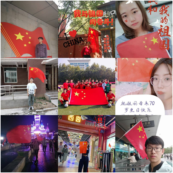 为宣示自己对祖国的热爱,国庆假期,计算机学子走南往北,拍下了自己与祖国同框的最美纪念照。他们明媚的笑脸上洋溢着对祖国的热爱,对祖国七十华诞的开心,对自己是个中国人的骄傲。他们与国旗的同框合照,有的是在路边,在车站,在寝室楼下,在旅游时……无论是在哪里,他们的脸上都洋溢着笑容,这就是祖国的魅力。“我与祖国同奋斗”“厉害了阿中哥”“祝祖国繁荣强盛”等激情祝福飘满屏幕。
