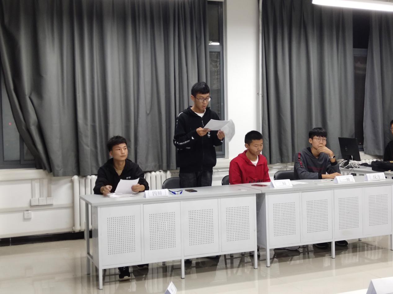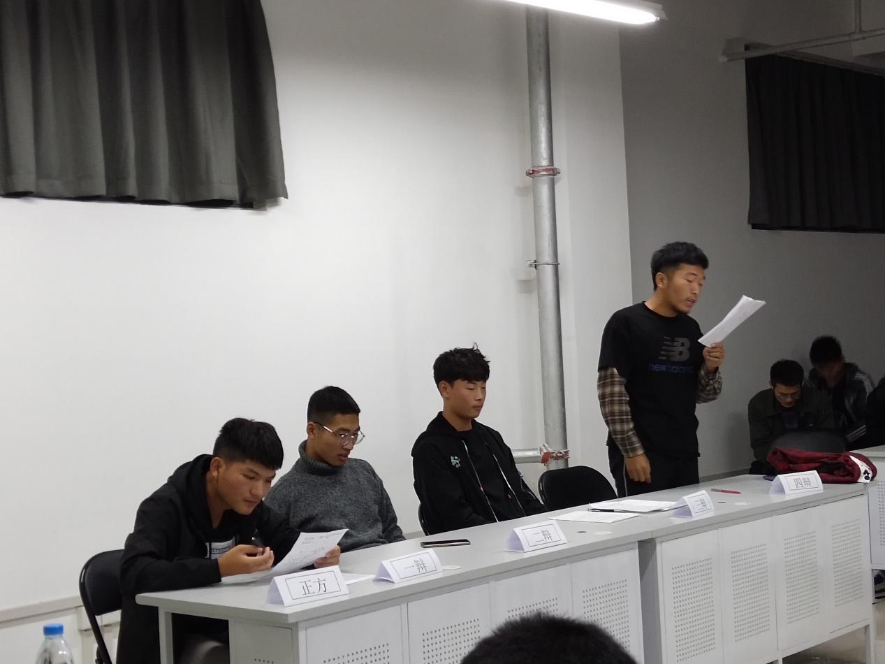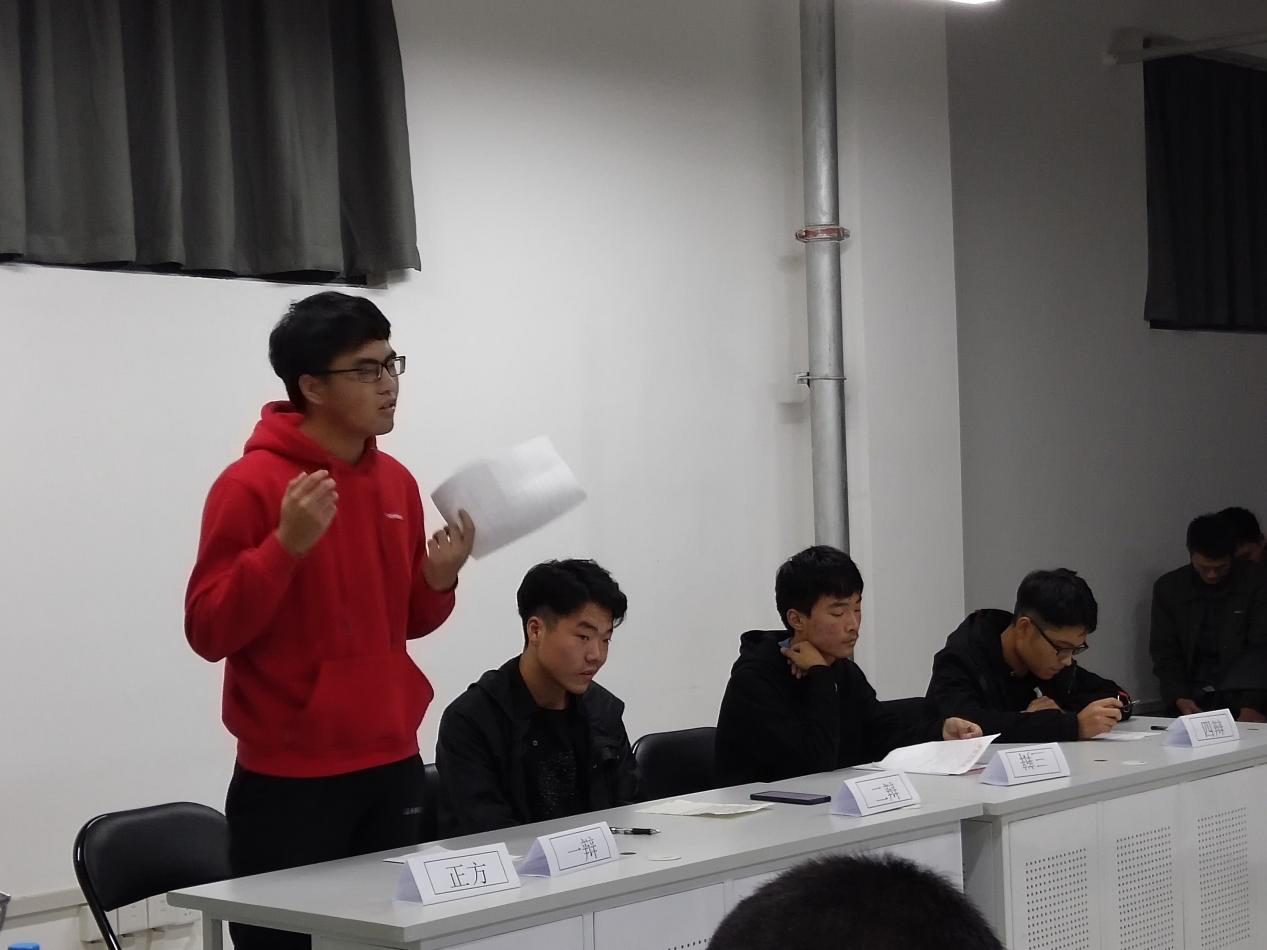 在辩论赛上,六组选手分别围绕三个辩题展开了辩论。第一场辩论赛中,双方辩友据理力争,针对对方辩友的语言漏洞进行反驳,营造了一个较好的辩论氛围。但是,个别辩友略有紧张,致使表达不太清晰。另外,各组辩尽对于时间的把控不甚熟练,有时间超时的问题。对此,裁判对选手提出了注意事项和指导。第二场辩论赛中,双方辩友语言犀利,攻势逼人,现场气氛迅速升温。其中进行的自由辩论环节尤为精彩,双方辩友举例现实中的新闻事例,还有我国的法律条文进行辩论,更是增强了说服力。正反辩友均展示了他们清晰的思路。随后,评委对本辩论塞做出了精彩的点评和心理上的调节。本场辩论赛结束后,赛场下的辩论人员未曾分个你我,他们在认真的总结赛上的表现,并表达了对对方辩友的建议。第三场辩论赛中,语言较为温和,但是,他们以更为严谨的态度完成了本场辩论赛。他们用来表述观点的语言前递后接,可以更好的针对论题提出观点。另外,他们对于时间的把握较前两场也有更大的进步。最终,经裁判研究选出的院辩论队员分别是赵昊宾,王博凡,刘子腾,丁丽君,王可,郭有杰,宗江博和段双双。