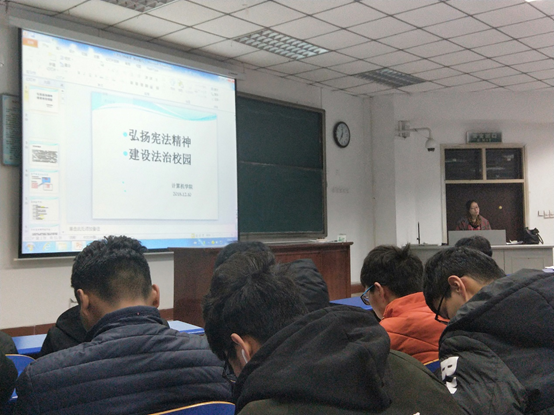 2018年12月10日,学工办主任侯向花老师于四号楼101教室以“弘扬宪法精神,建设法治校园”为主题做出宣讲。williamhill英国18级全体学生出席本次讲座。