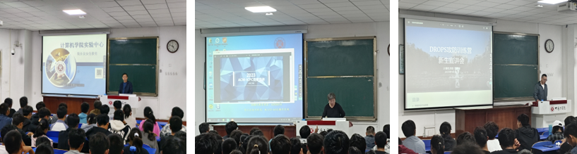 接下来是我院两个重点学科竞赛团队——ACM算法团队和DROPS攻防训练营的负责老师崔岩、冯国朋老师分别进行介绍。这两支团队一直致力于学生算法与程序设计、网络安全专业实践能力培养,在连年的中国大学生程序设计竞赛、蓝桥杯全国软件和信息技术专业人才大赛、全国大学生信息安全竞赛、“强网杯”全国安全挑战赛等比赛中屡获佳绩。两支团队的介绍,激发了新生极大参与热情,也希望我院的学科竞赛不断进步,再创佳绩。