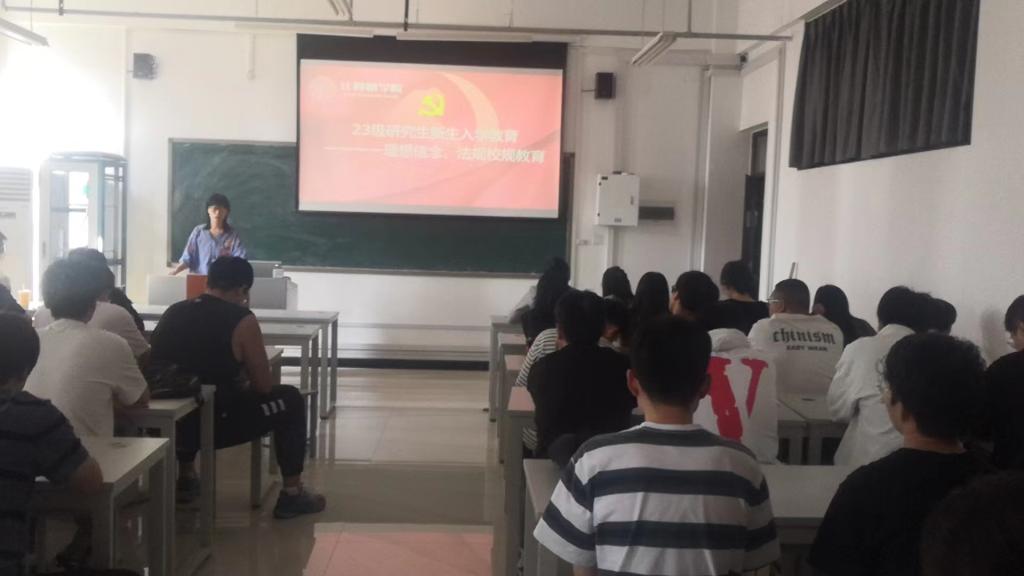 会议上,侯书记就研究生新生入学表示热烈欢迎,同时就新生民族宗教政策教育、入党教育、理想信念、法规校规教育、校情校史、迎评促建教育、文明养成、诚实守信教育、安全防诈教育、奖助专题教育进行专题分类讲解,她给新生介绍我院发展历程,专业设置,期望研究生新生坚定理想信念,遵守校规校纪,提升防诈意识,能够在科研上有所建树,学有所成。