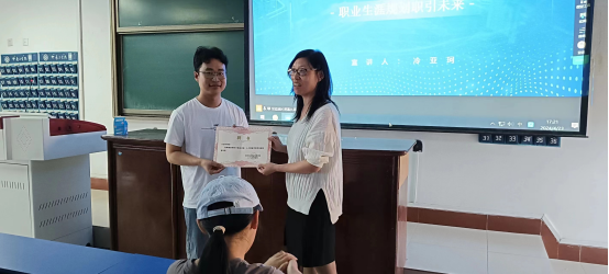 首先,由全国首届职业规划大赛河南省总决赛就业赛道金奖获得者、数学与信息科学学院2022级研究生冷亚珂开讲,他从个人参加全国大学生职业规划大赛经历入手,解析了大赛文件,分享了参赛过程中的经验以及收获。冷亚珂围绕职业发展启蒙、规划、行动等内容,鼓励大家注重专业积累、勇于实践探索,不断提升个人综合素质,在学习、就业能力等方面不断攀升。