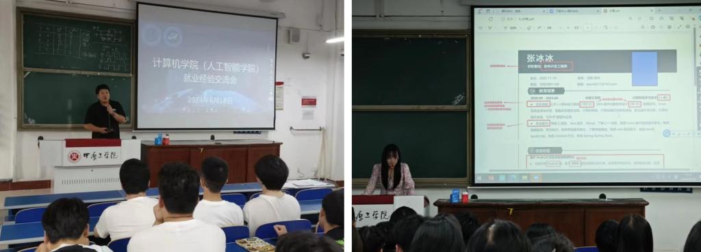 2024年6月18日晚,williamhill英国(人工智能学院)在龙湖校区3号教学楼102教室成功举办了优秀学长分享会暨求职就业经验交流会。学院党委副书记侯向花、2024届优秀毕业生代表、2025届全体同学和辅导员共同参会。