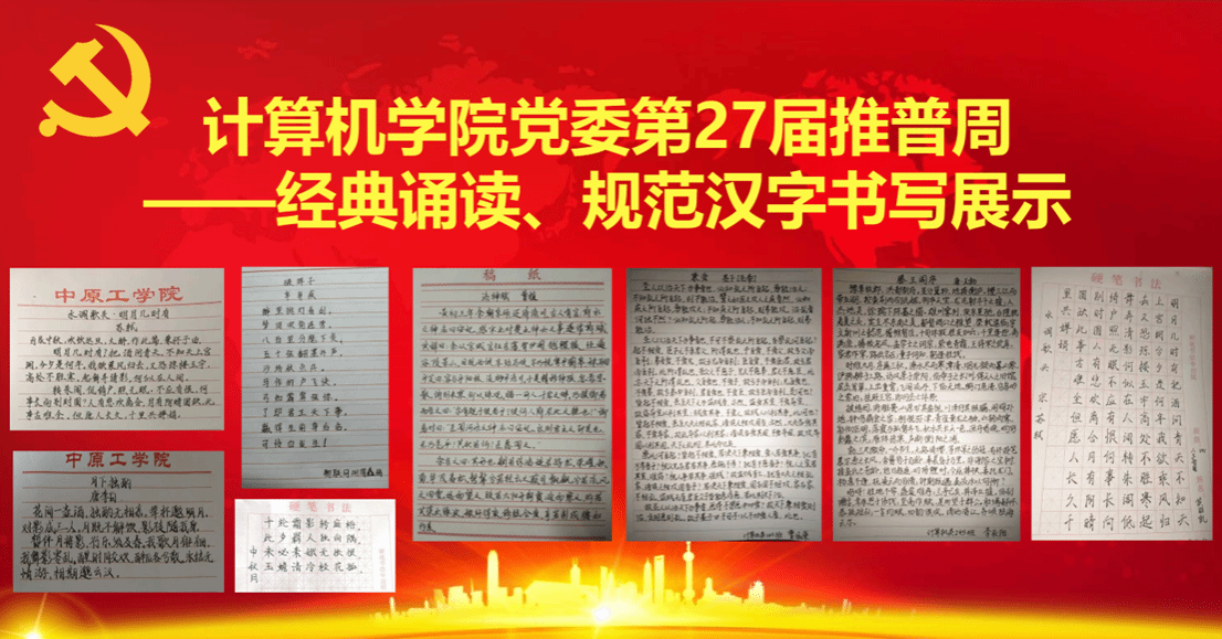 学院针对新老生班级组织开展了“经典诵读”和“规范汉字书写”两项赛事活动,进行了评比和展示及新媒体推文宣传,线上线下、传统宣传形式与新媒体平台相结合的方式,多方宣传加强效果。学院党委将以此次推普周为契机,在学习和使用国家通用语言文字的道路上不断前行,用实际行动立德树人,为构建中华民族共有精神家园添砖加瓦。