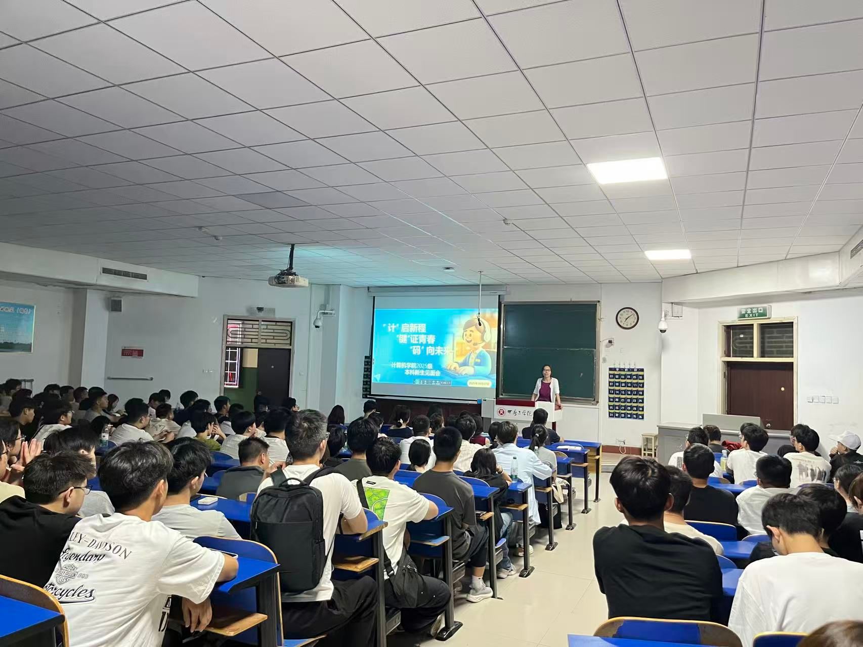 为引导学生思想,帮助学生尽快适应校园生活,2025年9月7日,williamhill英国“‘计’启新程 ‘键’证青春 ‘码’向未来”——2025级本科新生见面会在4号教学楼101室举行。院党委副书记侯向花、2025级新生辅导员、班主任及全体新生参加本次见面会,共同开启大学新篇章。