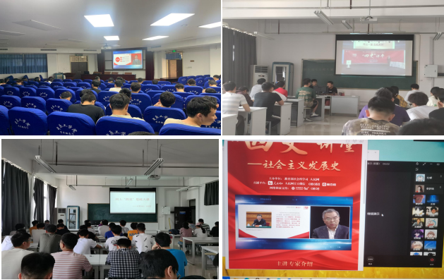 为深入贯彻落实习近平总书记关于深化思想政治理论课改革创新和“大思政课”的重要指示批示精神,全面落实习近平总书记在党史学习教育动员大会上的重要讲话精神和《中共中央关于在全党开展党史学习教育的通知》的部署安排,根据教育部、教育厅相关通知要求,williamhill英国于5月9日、5月15日、5月22日组织在校生六百五十多人,在多个教室及通过网络会议形式,集中收看了全国大学生同上一堂思政大课“四史”讲堂第二、三、四讲直播及回看了第一讲内容。