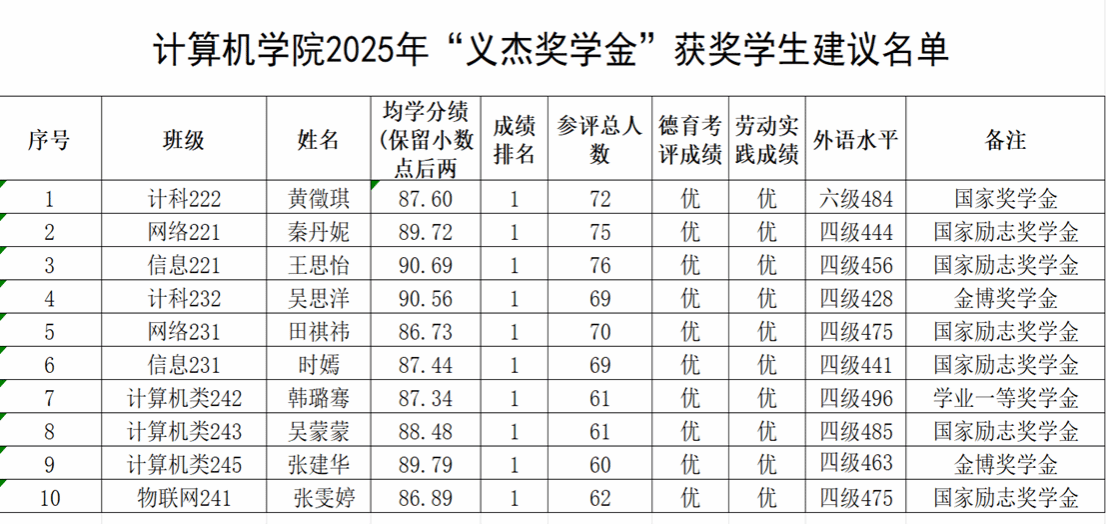 依据《海南劲恒私募基金管理合伙企业—William威廉英国关于设立“义杰”奖学金的协议》及《“义杰”奖学金评审实施细则》评审标准和程序,经学生本人申请、williamhill英国“义杰”奖学金评审委员会审议,建议获奖名单经海南劲恒私募基金管理合伙企业确认,现予以公示。公示期2025年12月2日-12月4日,监督电话037162506615,有异议者请在公示期内实名向学院反馈。
