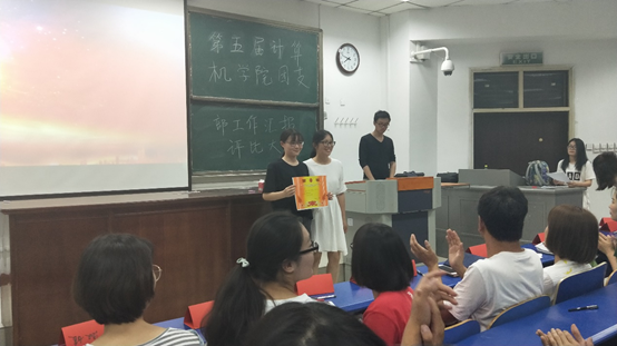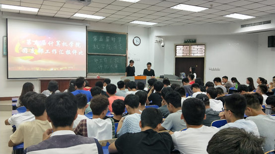 软件171班团支书徐畅给大家分享了他们团支部在过去的一年的经历诸如包饺子大赛等精神文明建设活动,除此之外,还介绍了陈婧晗、许锴等优秀团支部成员。软件172团支部着重向大家展示了他们响应联合国政策而举行的节约用水的主题班会。计科172团支部代表讲述了他们在十佳歌手和运动会上难忘的故事。网络171班团支书重点介绍了他们“世界那么大,让我们去看看”的主题班会。王淼老师在讲话中,着重提出每个班级要加强思想建设、制度建设和最重要的学风建设,叮嘱在座的同学要树立远大理想,并为之付出努力。最后软件171班团支部以89.785分荣获第一,计科171班团支部以89.175分取得第二,软件172班团支部以89.025获得第三。软件172班团支部获得“最佳团支部”奖,计科171班团支部和软件172班团支部获得“优秀团支部”奖。