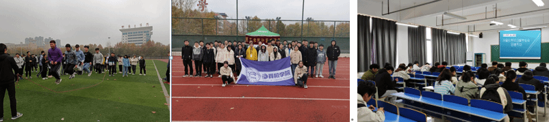下午2时,全体成员按照部门分组在操场主席台下集结,在主席团成员宣读活动规则后,6个部门6个小组分别挑战你说我猜、交头接耳、夹球往返跑、合力跳大绳等健体益智项目活动。经过近两个小时的比拼,大家收获了快乐、促进了友谊、并各有斩获、带着学院标志的纪念品满载而归。全体成员合影留念后,到三号组团楼908观看电影。