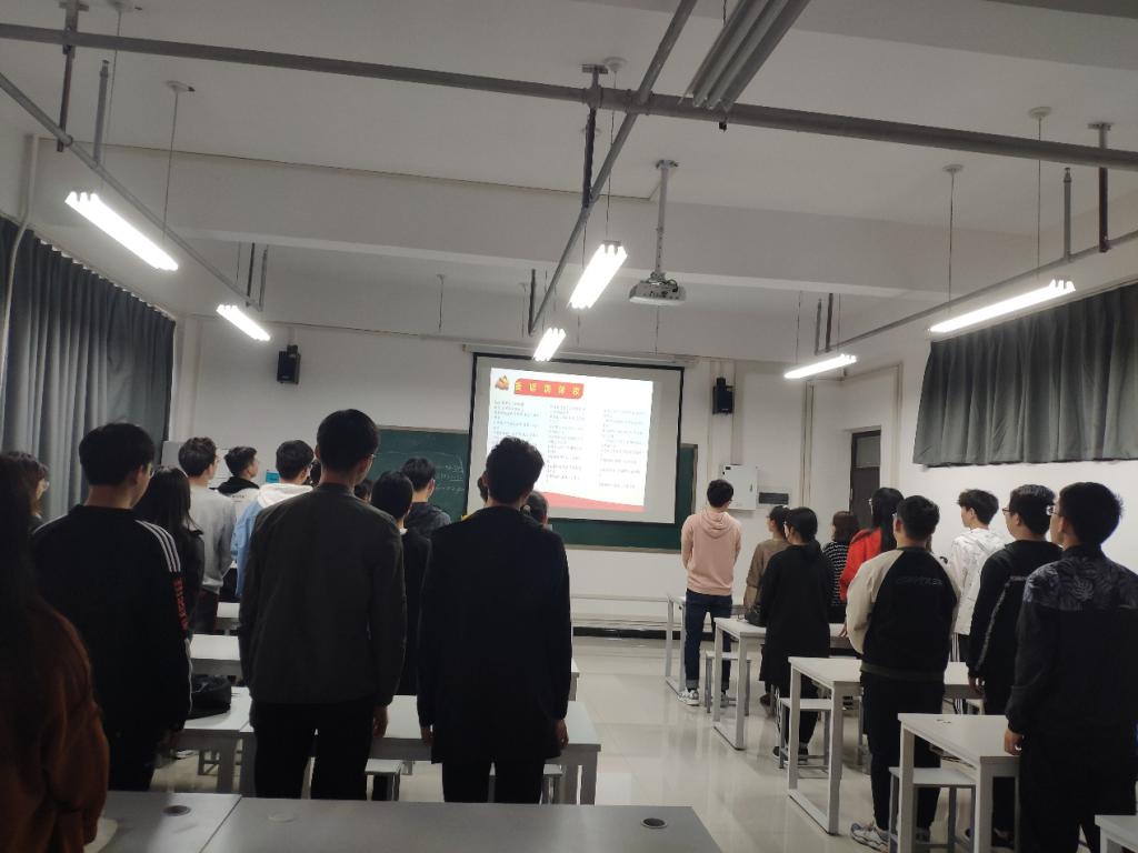 仪式刚开始,王淼老师主持大家起立奏唱国际歌,紧接着给大家详细的介绍了积极分子的具体课程安排、上课纪律、学习强国APP的学习安排以及想要成为一名积极分子所需要拥有的思想觉悟和要遵守的党规党纪等内容。最后孙奇峰老师为大家发放积极分子教材,并为大家详细的讲解学习强国APP的具体使用方法。