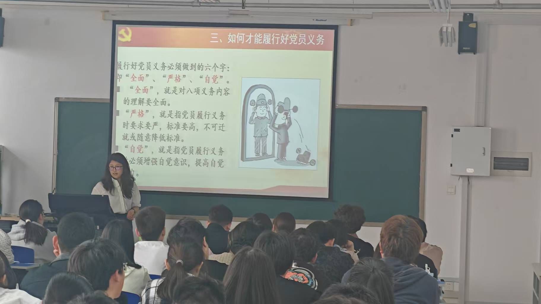 2025年4月8日,我校党委组织部副部长、机关党委副书记王淼为williamhill英国、网络空间安全学院与人工智能学院第65期入党积极分子党课培训班全体学员讲授党课——《努力成为一名合格的共产党员——共产党员的条件、义务和权利》。