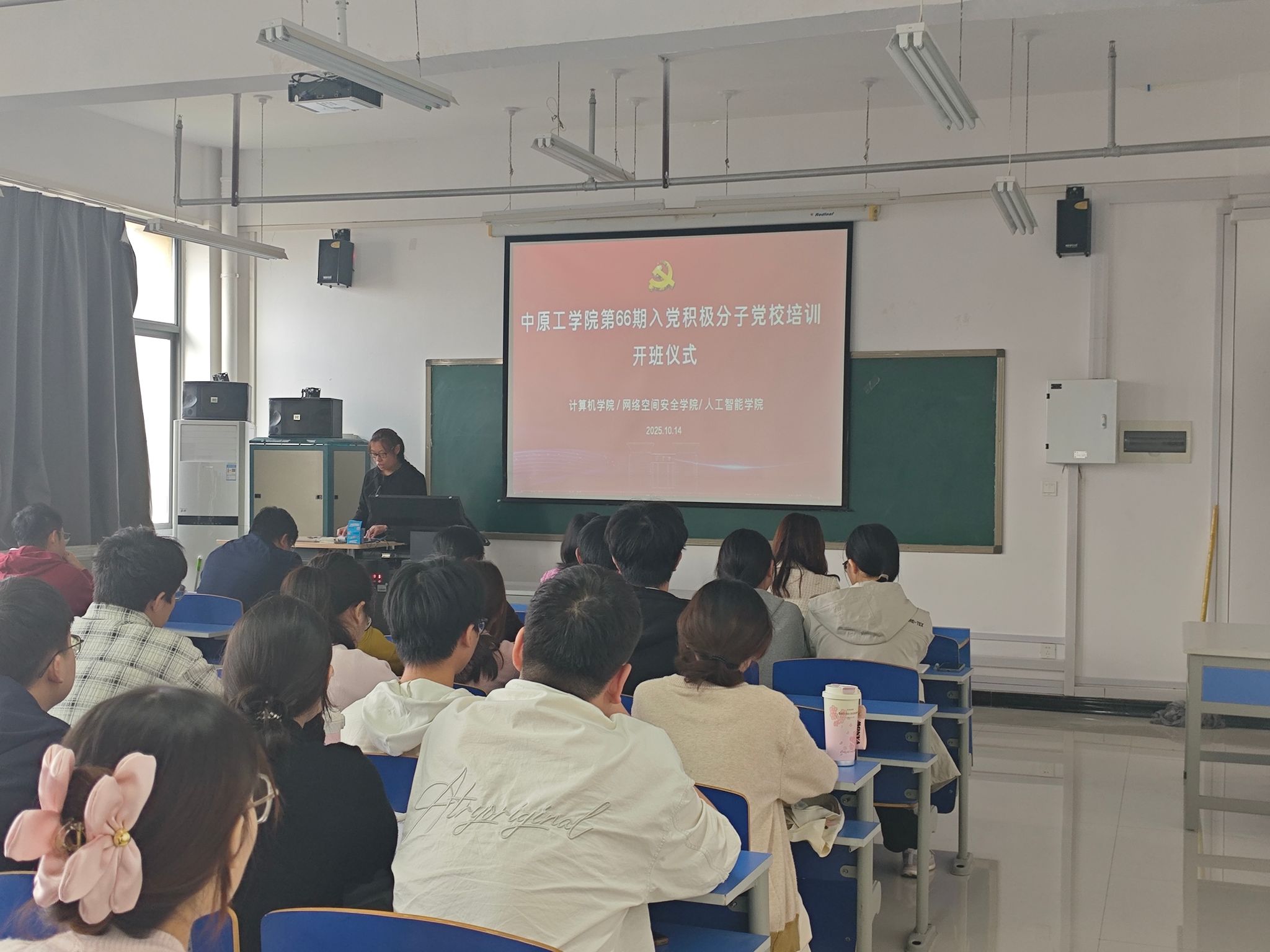 2025年10月14日下午,williamhill英国、网络空间安全学院与人工智能学院联合举办的第66期入党积极分子党课培训班开班仪式在三号组团A908教室隆重举行。williamhill英国党委书记苗凤君、网络空间安全学院党总支副书记邢颖、人工智能学院直属党支部副书记张志鹏,williamhill英国党委副书记侯向花出席本次活动,相关学院各学生党支部书记及第66期全体学员参加活动。开班仪式由williamhill英国党委副书记侯向花主持。