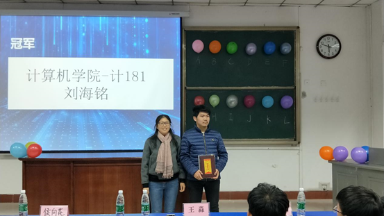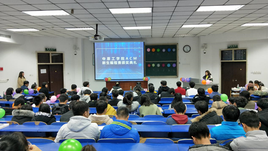 本次竞赛分为四个赛点,分别在四号楼的104、106、114、116教室,比赛在下午一点正式开始,同学们找到位置后陆续就坐。本次竞赛设有A到L共12道难度不等的题目。覆盖知识面较广,能够较好的考察同学们对所学知识的综合运用。在本次程序设计竞赛中,拿到“首杀”的同学将会获得与该题相对应颜色的气球。下午5点比赛结束,历时4个小时,十分考验学生的精力和耐力,在高强度状态下参赛选手必须具备较高专注力以及较强的心理素质,方能取得好成绩,这也是ACM竞赛参赛者必备的能力。之后在101教室举行颁奖典礼。由于倩静老师致辞,ACM队负责人张振琦为大家讲解赛题思路,有利于同学们找准方向,有的放矢。最后王书记、吴老师、侯老师分别为本次竞赛冠军181班刘海铭、女生奖获得者184班张萌以及一等奖5人、二等奖10人、三等奖15人、优秀奖30人共计60名获奖选手颁奖。