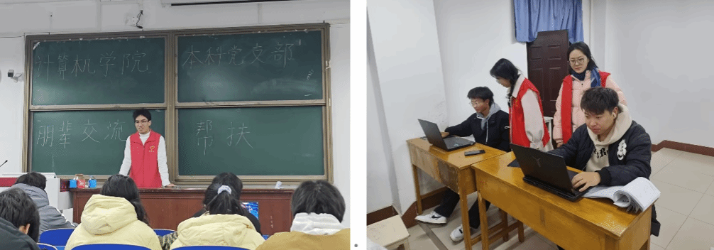 为建设优良学风,充分发挥党员的先锋模范作用,引导学生党员在助力学风、服务同学中走前头、作表率、树形象,williamhill英国党委学生党支部继续开展学生党员学业帮扶志愿服务,为学生提供学习、生活等方面的指导和帮助,促进学生共同成长进步。党员志愿者深入大一晚自习教室,发挥专业优势,传授有效学习方法,帮助同学查漏补缺、复习提高。学院组织党员结对加入低年级班级QQ群,实时为学弟学妹答疑解惑、助力班级建设,发起“冲刺CET”四六级打卡活动,开展朋辈交流互助,推动学风建设迈向新台阶。