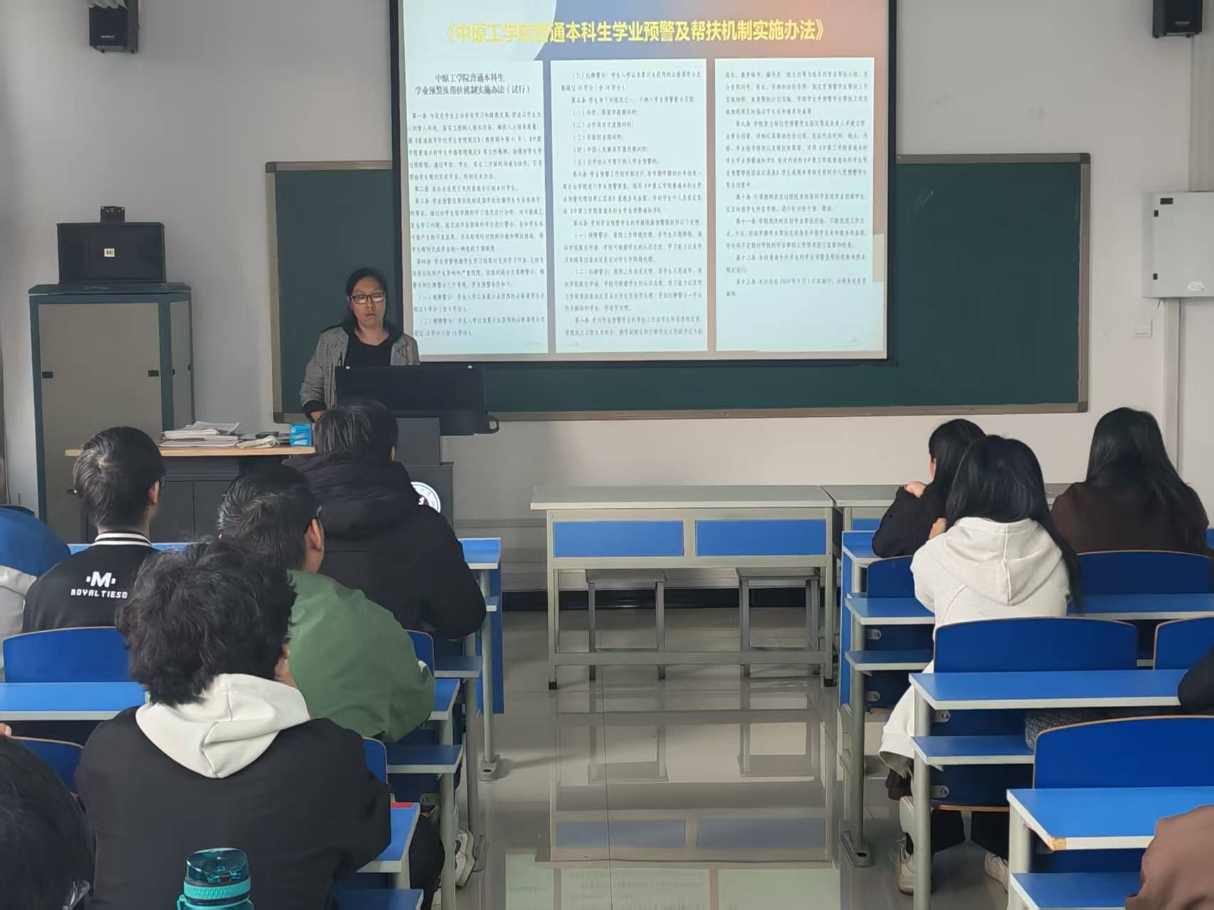 侯向花副书记在发言中分析了学业预警的严肃性与重要性。她指出,学业预警不仅是学校学业管理制度的体现,更是对同学们学习状态的关键提醒和深切关怀。她勉励预警学生要正视现实、端正态度、树立信心,深刻认识到学习是学生的第一要务,是个人成长发展的基石,必须立即行动起来,查找不足,制定切实可行的改进计划。